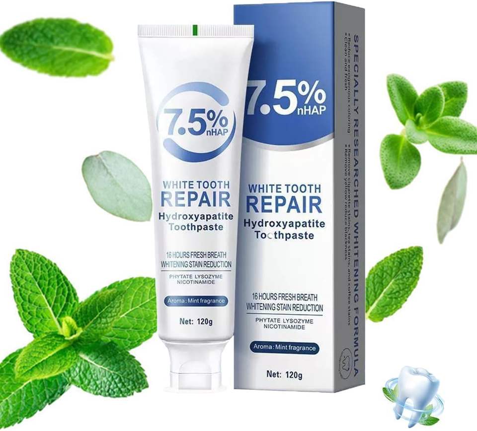 Pasta Dental Blanqueadora con 7.5% de Hidroxiapatita nHAP para Reparación del Esmalte, Dientes Sensibles, Reducción de Manchas, Aliento Fresco, Cuidado Bucal, 120g