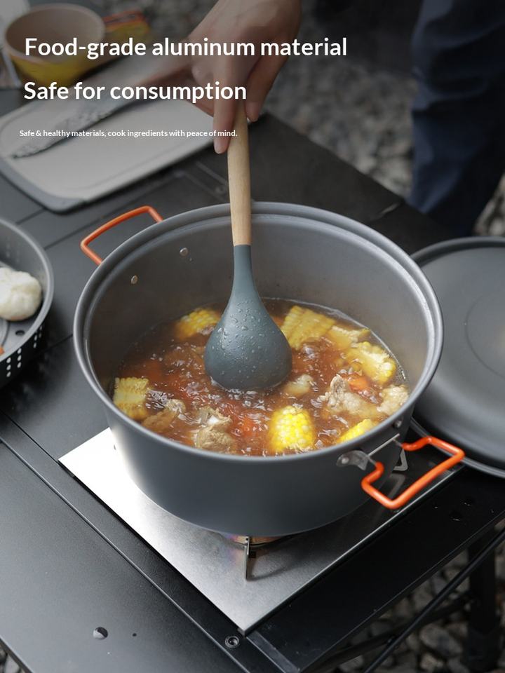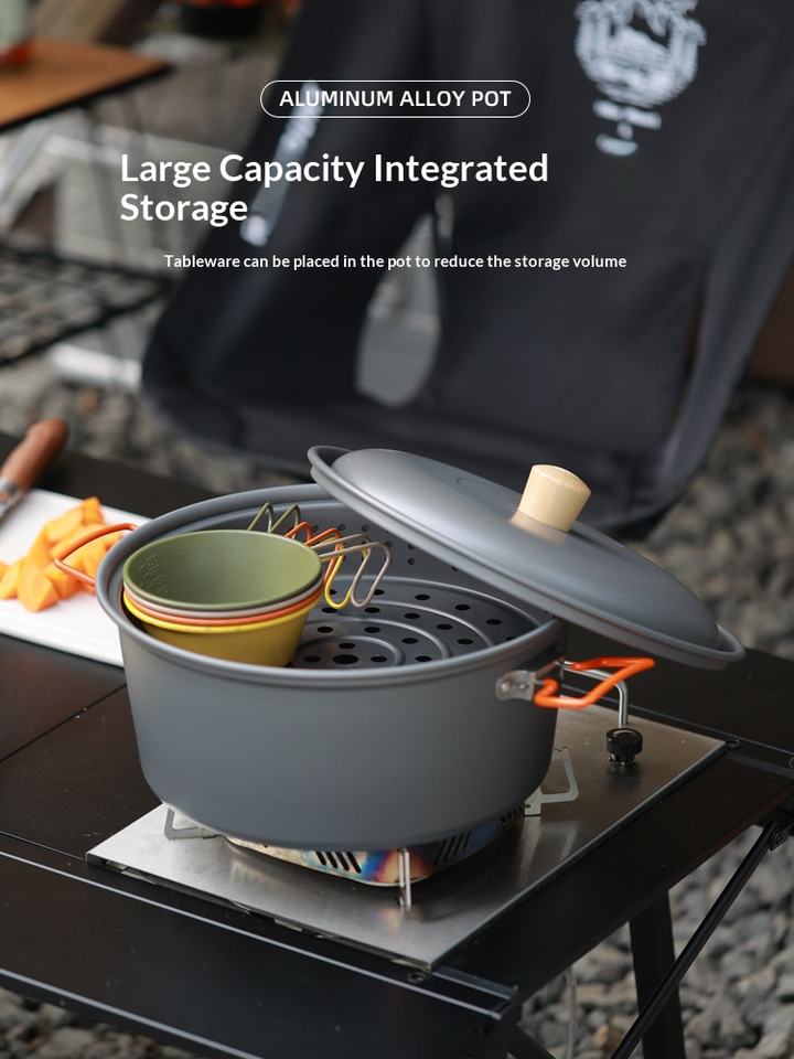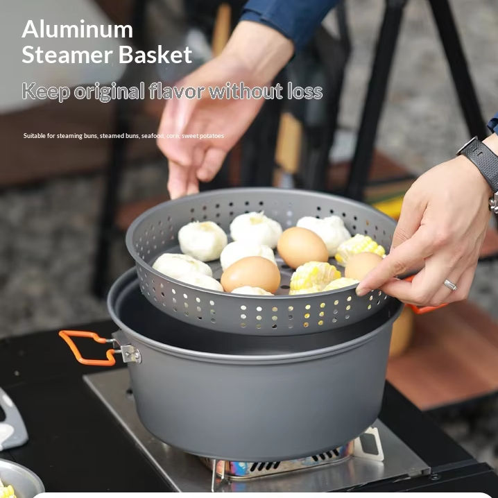 Olla Integrada para Cocinar al Vapor y Hervir al Aire Libre de Gran Capacidad (7.5L), Utensilio de Cocina Portátil de Aleación de Aluminio de Doble Uso para Acampar