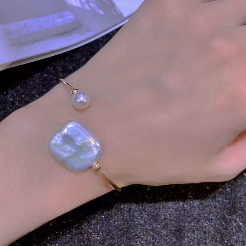 Pulsera de Perlas de Agua Dulce de 7-8mm con Medio Orificio, Barrocas Cuadradas de Alta Calidad para Damas, Accesorio Personalizado