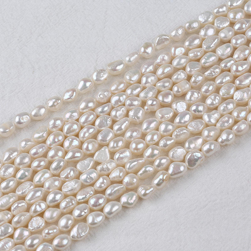 Perlas de Agua Dulce Naturales Barrocas de 7-8 mm, Blancas, con Doble Brillo, Hechas a Mano, para Joyería DIY, Perlas de Agua Dulce Dispersas con Orificio Recto