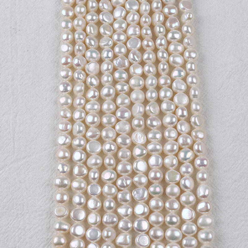 Cadena de Perlas Cultivadas de Agua Dulce Naturales Barrocas Blancas de 7-8 mm, Perlas Sueltas para Hacer Collares y Pulseras, Venta al por Mayor en Zhuji