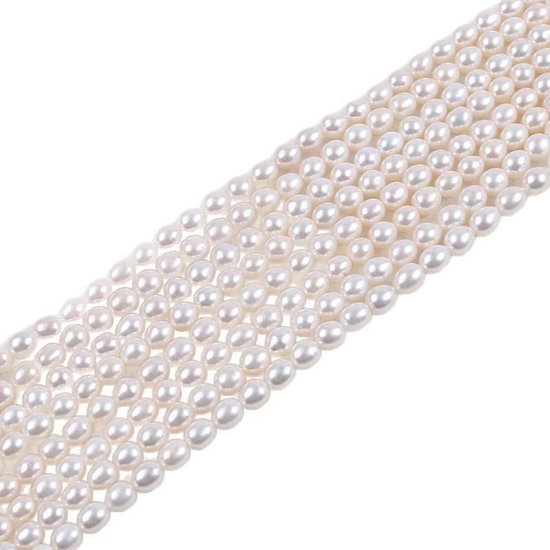 Cadena de Perlas de Arroz Blancas y Rosas de 7-8 mm, Perlas Naturales de Agua Dulce Sueltas para Hacer Joyas, Collares, Pulseras y Accesorios de Zhuji