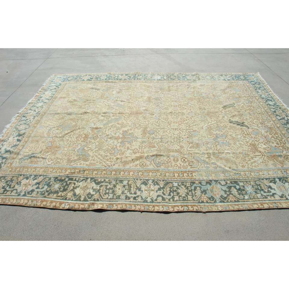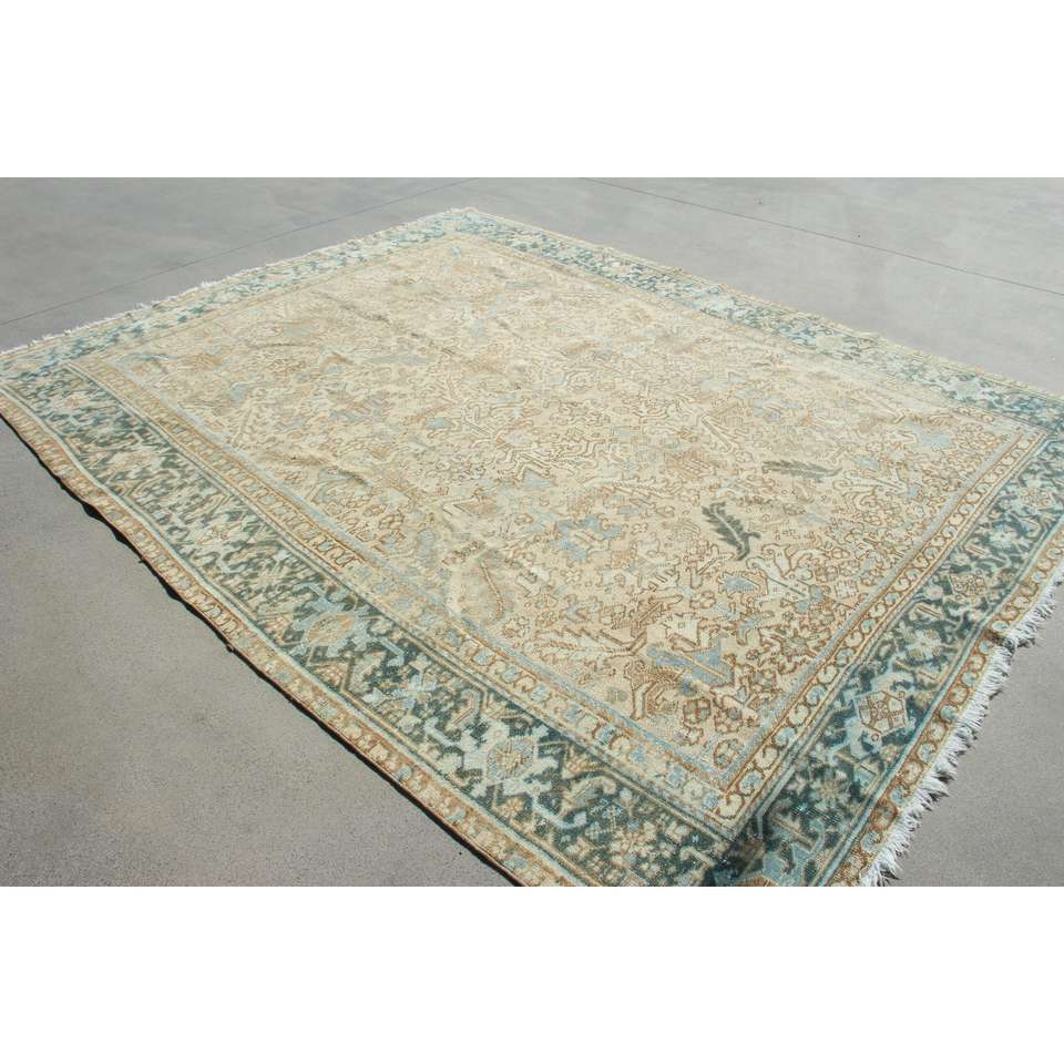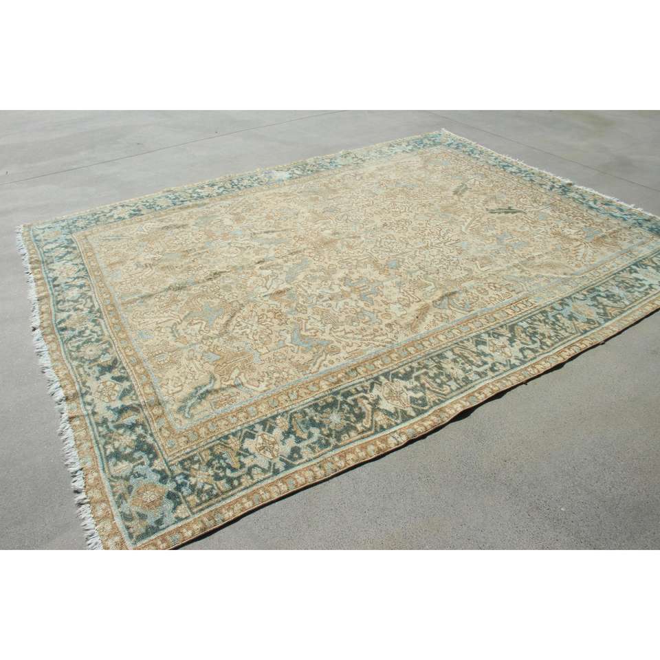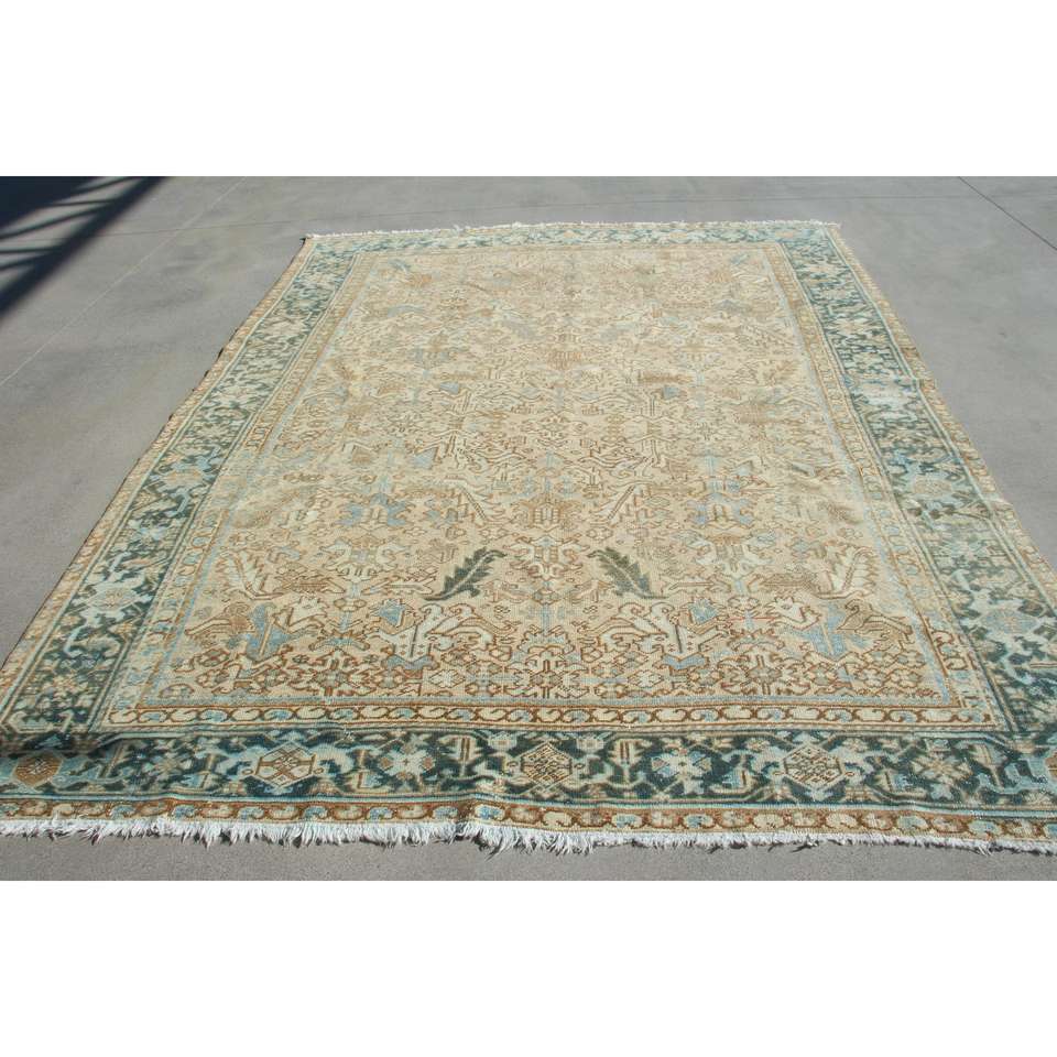 Alfombra Turca de 7,9x10,3 pies, Alfombra Azul Vintage del Suroeste, de Lana