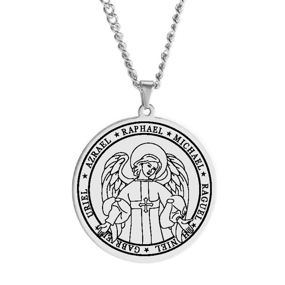 Nombre del producto:Amuleto talismán sello de alas de Angel colgante Acero inoxidable collar