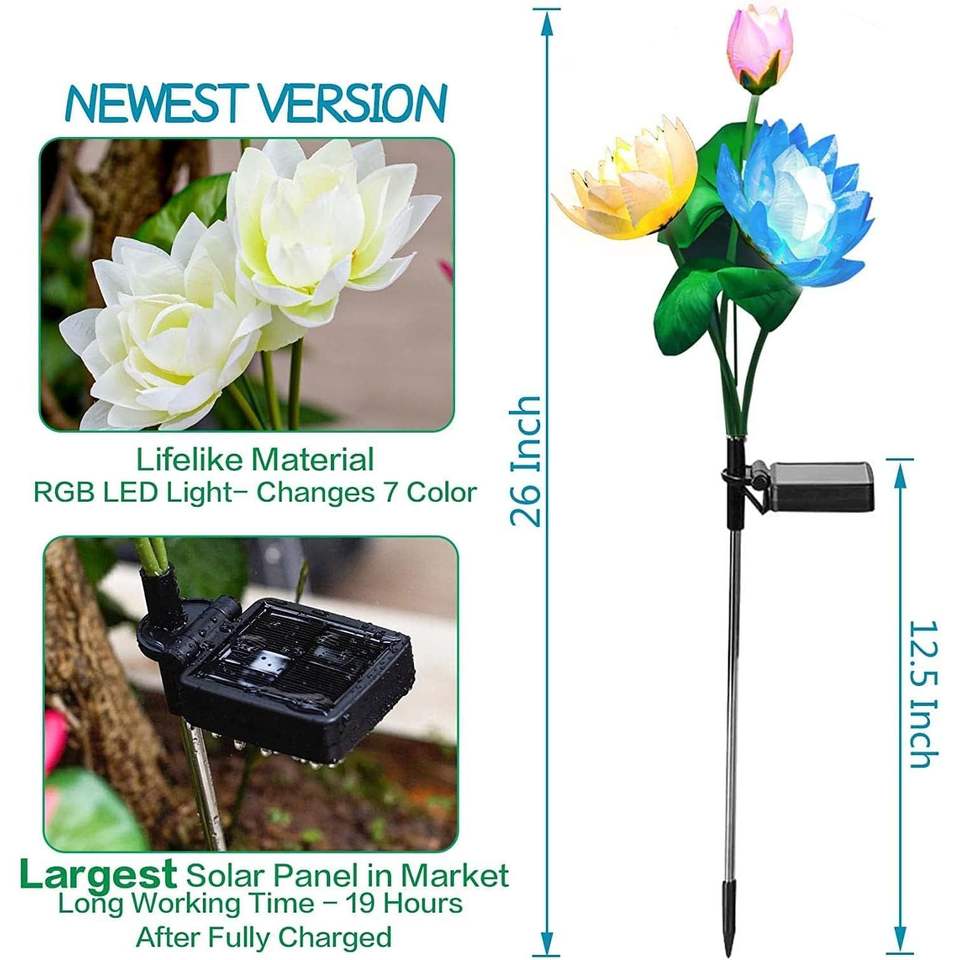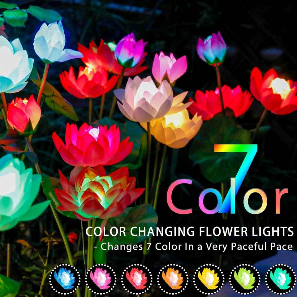 Luces Solares de Jardín con Cambio de 7 Colores, Luz Decorativa con Forma de Flor de Loto para Patio Exterior, Jardín y Decoración de Jardín