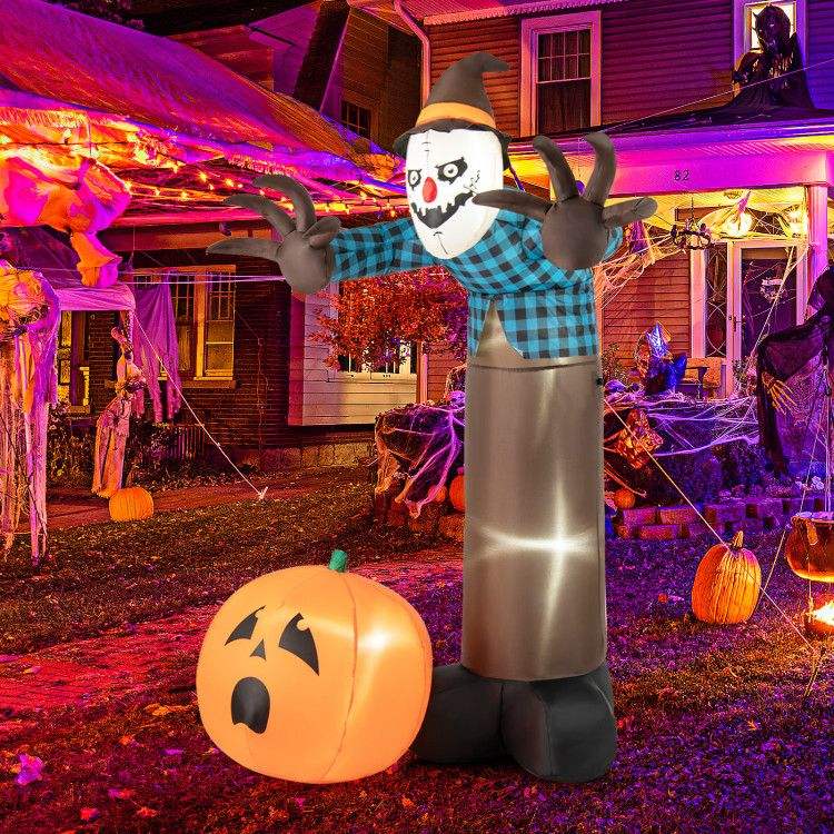 Decoraciones inflables de Halloween de 7 pies para jardín, espantapájaros fantasma con calabaza y luces LED integradas
