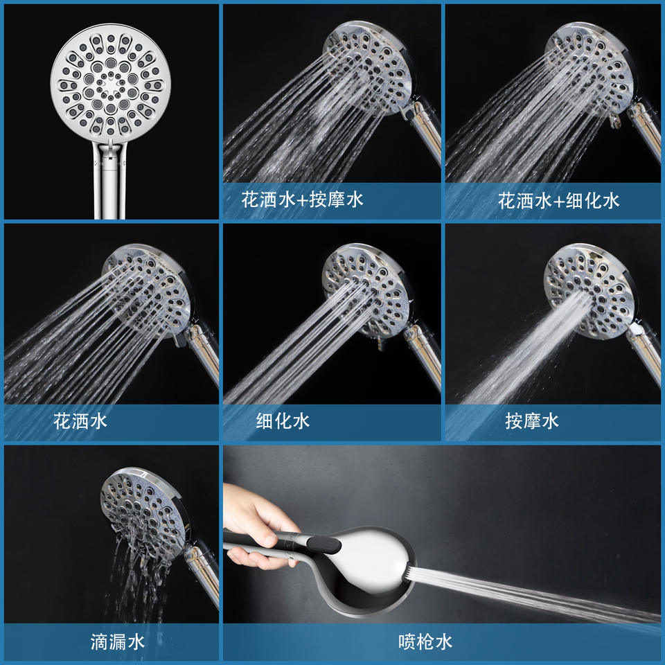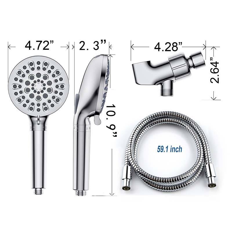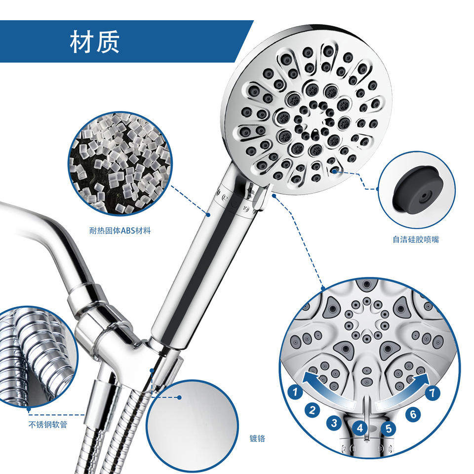 Cabezal de ducha con filtro de 7 funciones, con pulverizador, masaje, burbujas, lluvia, redondo, cromado, portátil, fácil de limpiar