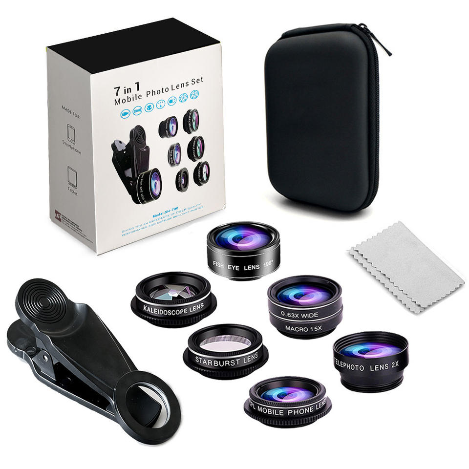 7 In 1 Mobile Phone Lens Kit Fisheye Wide Angle Telephoto Macro Starburst Kaleidoscope For Samsung Photography