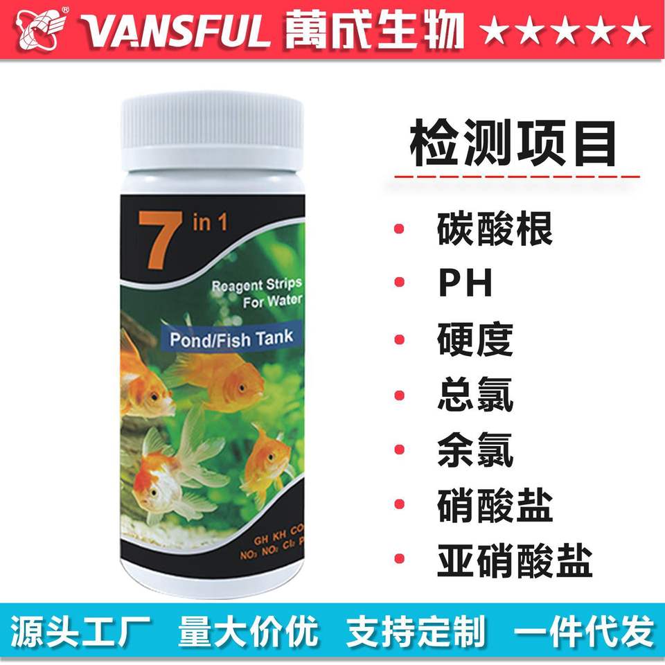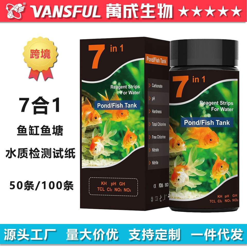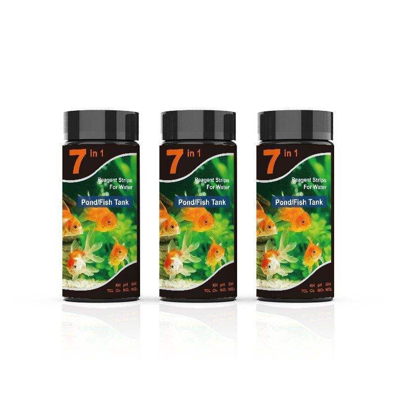 Tiras reactivas 7 en 1 para pruebas de agua en estanques y acuarios, con pruebas de pH, cloro, nitrato, nitrito, dureza y carbonato.