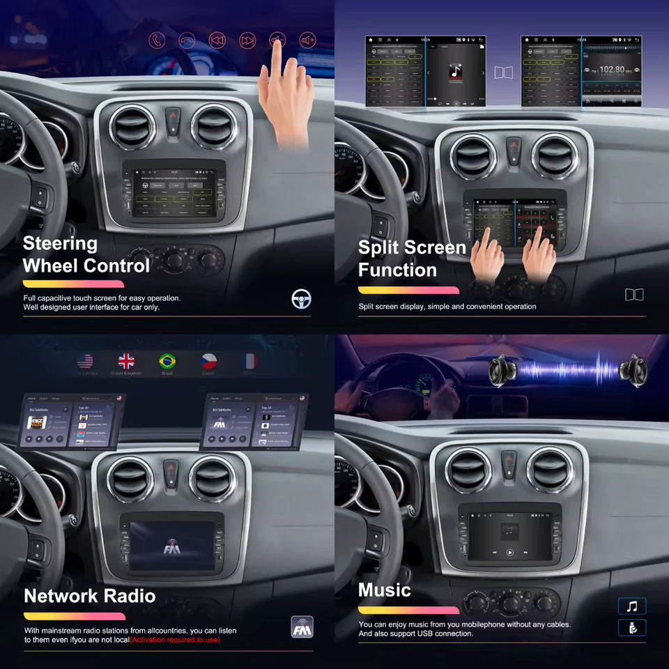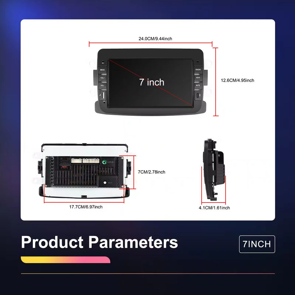 Estéreo para Auto Android de 7 Pulgadas Podofo 2+64GB, CarPlay Inalámbrico, Android Auto, Compatible con Renault Dacia Logan Duster Captur, GPS, WiFi