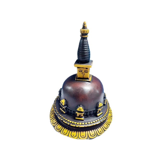 Escultura en miniatura intrincada Stupa artesanal de resina de arte budista de 7 pulgadas