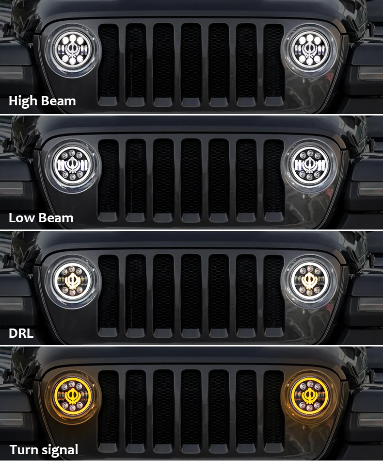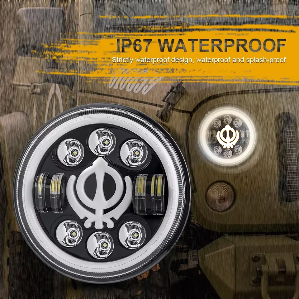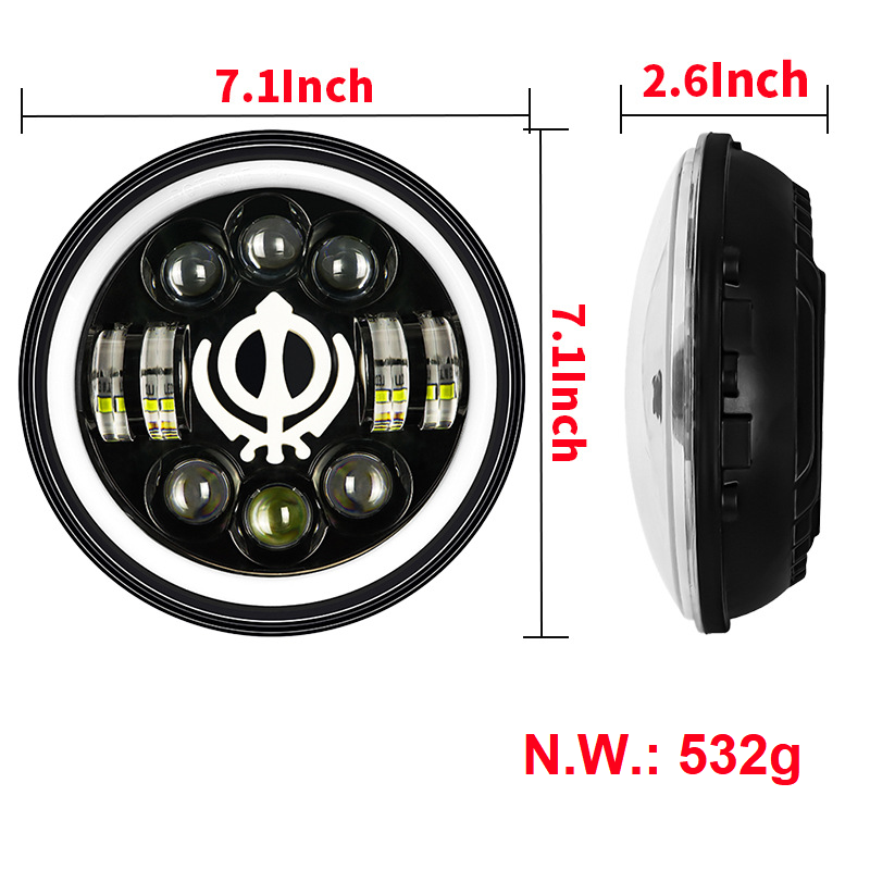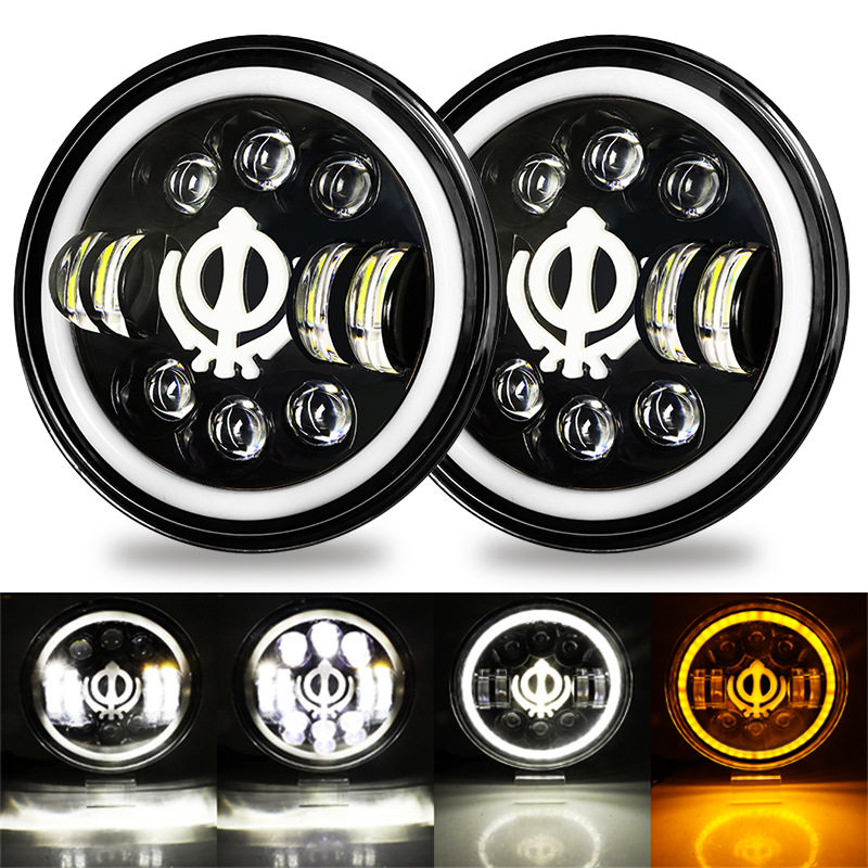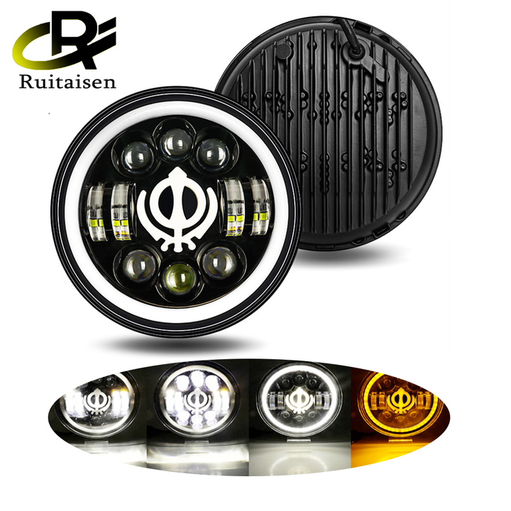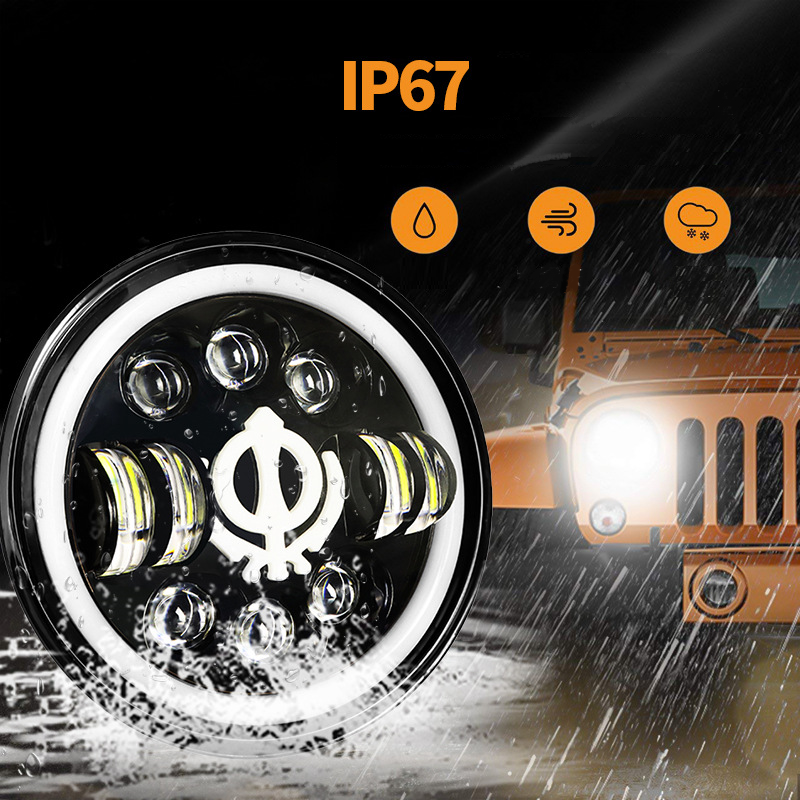 Faro LED Redondo de 7 Pulgadas H4 9003 HS1 con Aro Halo de Ojos de Ángel para Yamaha Harley Jeep Wrangler JK JT, Faro Delantero para Motocicleta Todoterreno