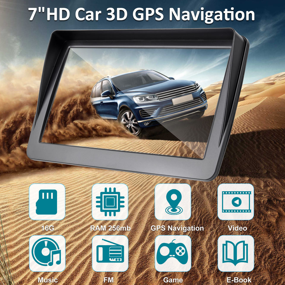 Navegador GPS Portátil HD de 7 Pulgadas con Parasol, 16 GB, 256 MB, Navegación GPS para Automóvil con Mapa Gratuito