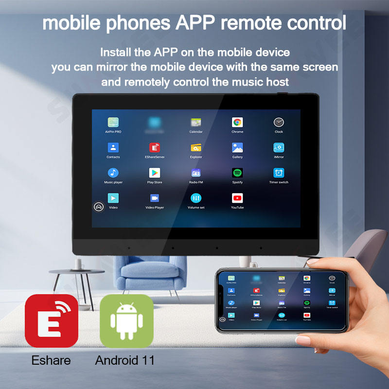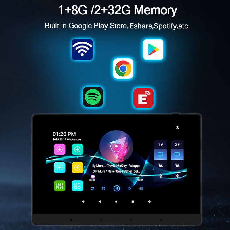 Amplificador de Pared Inteligente para el Hogar de 7 Pulgadas, 8x30W, Sistema de Audio Android 11, Panel de Control de Sonido Bluetooth, Reproductor de Música Estéreo WIFI
