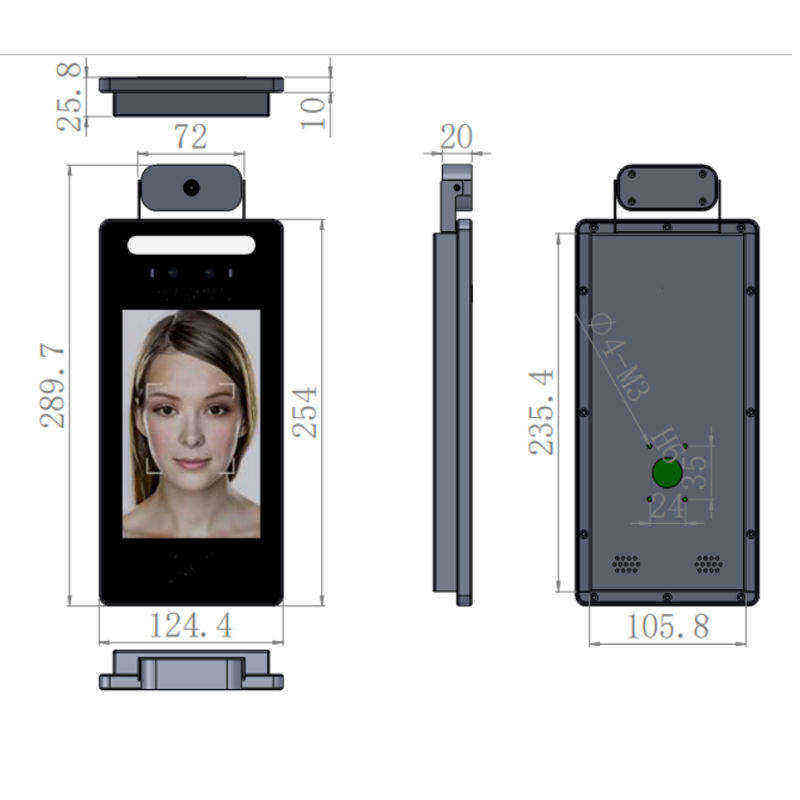 Tableta Android de 7 pulgadas con detección de temperatura corporal humana, cámara binocular de amplio rango dinámico RK3288 y luz infrarroja