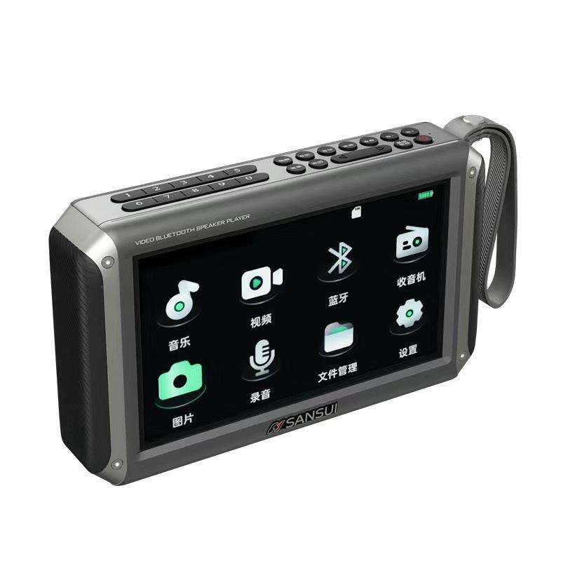 Radio FM Portátil con Pantalla LED de 7 Pulgadas, Altavoz BT, Reproductor de Música y Video MP4 con Tarjeta TF, Recargable, para el Hogar y Personas Mayores
