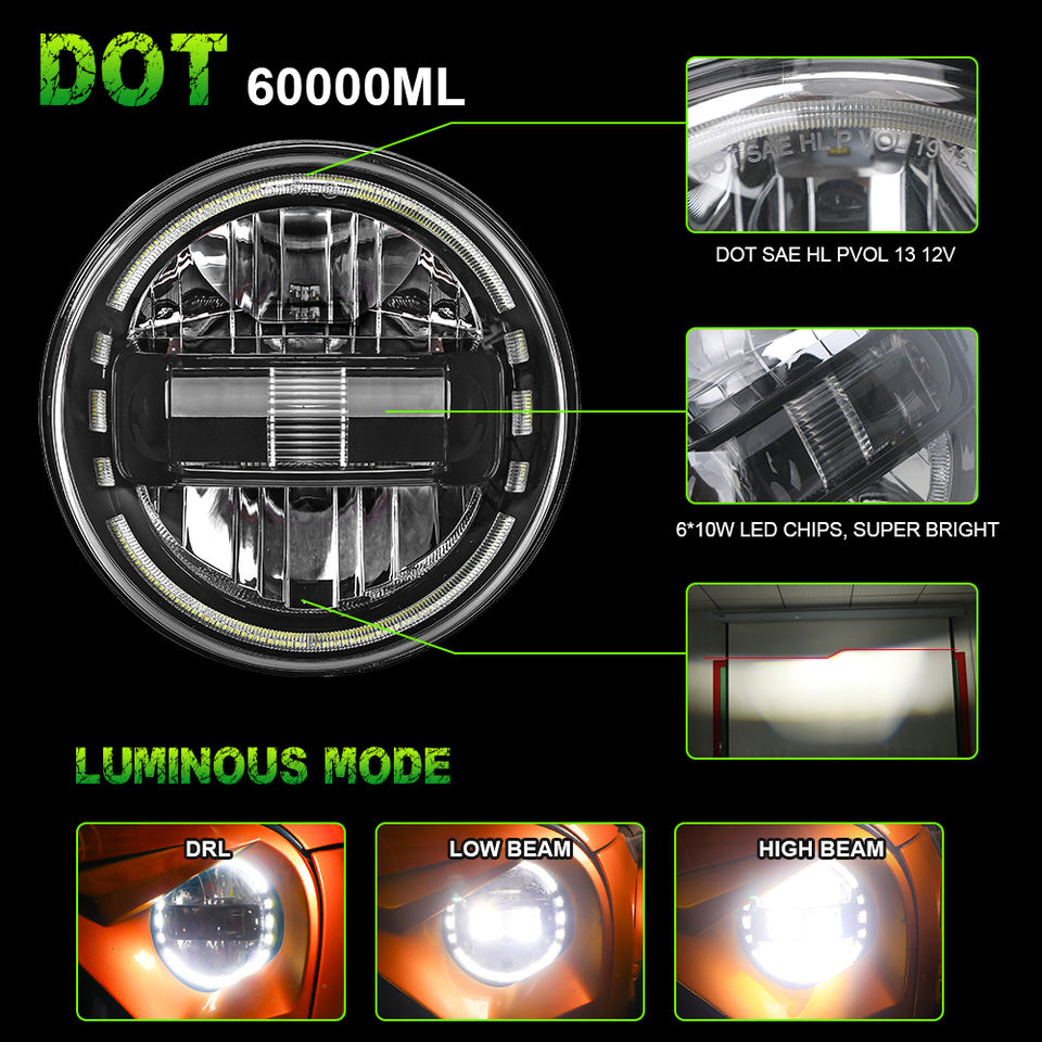 Faro LED de 7 pulgadas DOT DRL, Kit de bombilla de Halo de luz para Touring Street Glide Road King Ultra Classic Electra Glide FatBoy Softail