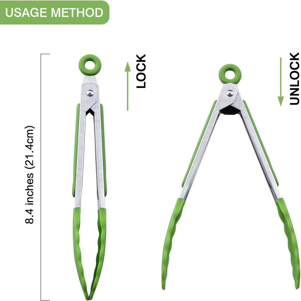 Pinzas de Cocina de Acero Inoxidable 430 y Silicona de 7 Pulgadas, Resistentes al Calor, con Bloqueo, para Servir Filetes y Alimentos