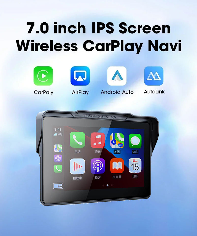 Grabadora de navegación GPS para motocicleta de 7 pulgadas CarPlay inalámbrico Android Auto pantalla impermeable Dual BT 5,0 WIFI cámaras duales