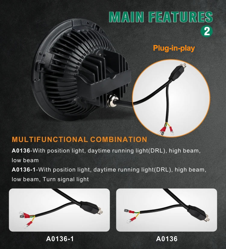Faro LED Redondo de 7 Pulgadas, Proyector LED, Resistente al Agua IP68, Universal, Luz Alta de 36W, Luz Baja de 25W