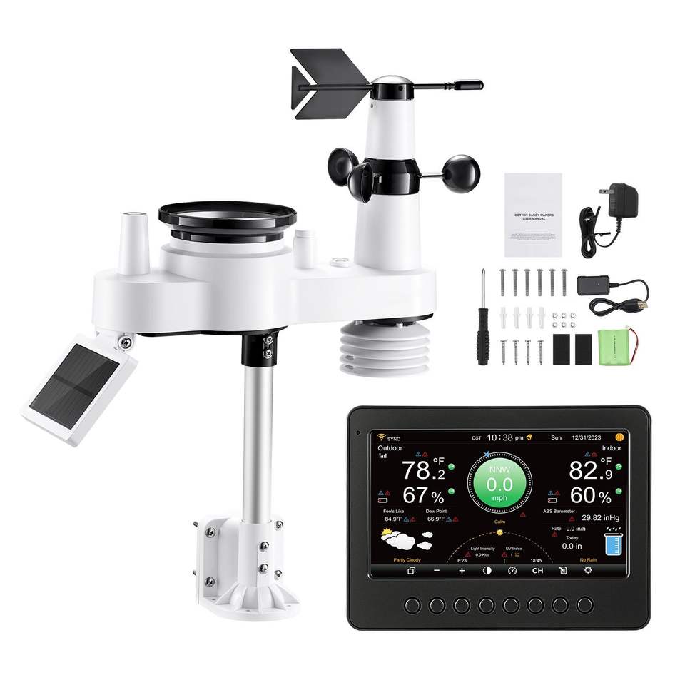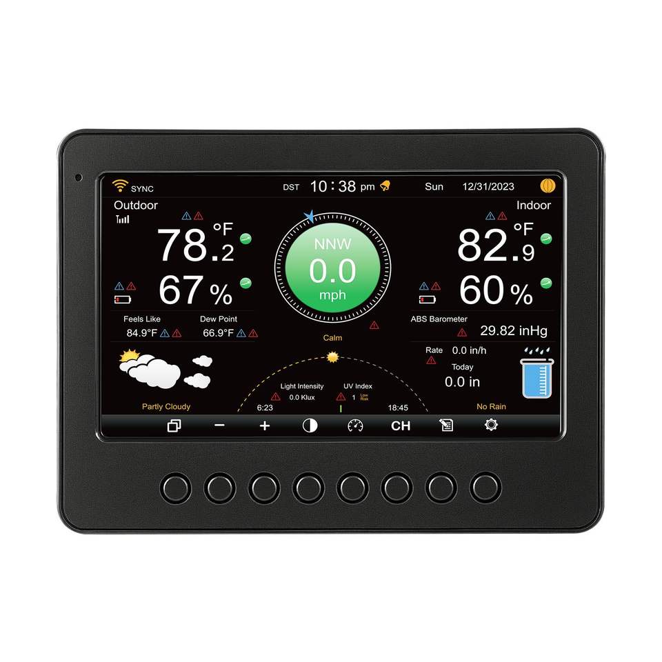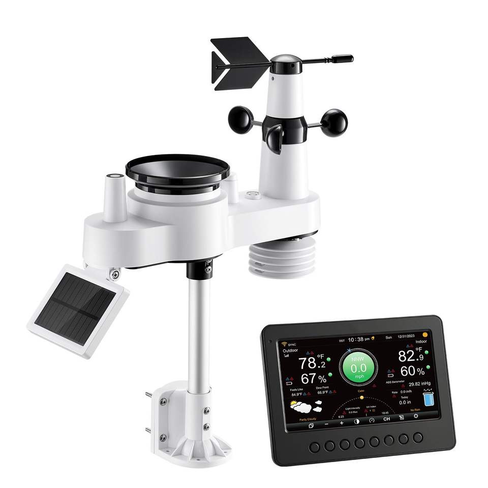 Estación Meteorológica Inalámbrica 7 en 1 con Pantalla TFT de 7 Pulgadas, Energía Solar, Sensor Exterior, Pluviómetro Interior/Exterior