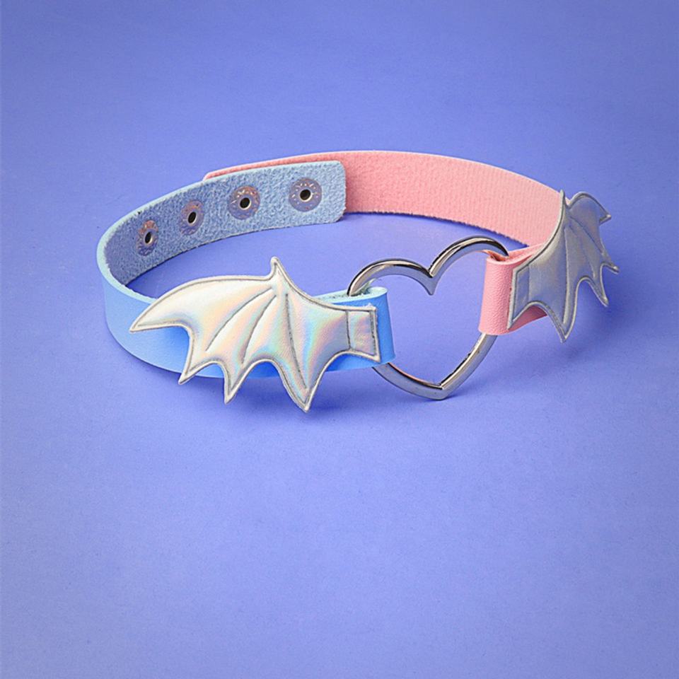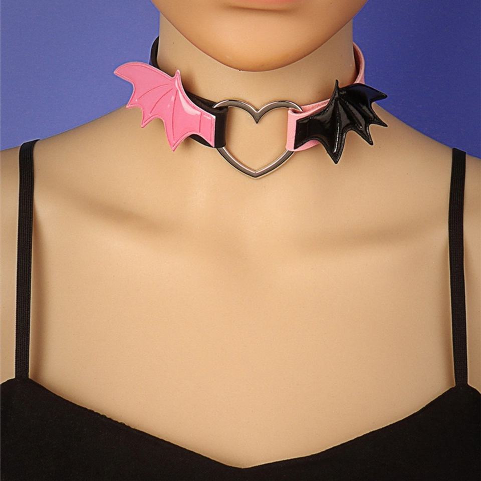 7 Modelos de Collares Góticos Punk, Gargantilla con Alas en Forma de Corazón Oscuro para Mujeres y Hombres, Collar Gótico de Cuero PU Negro Ajustable