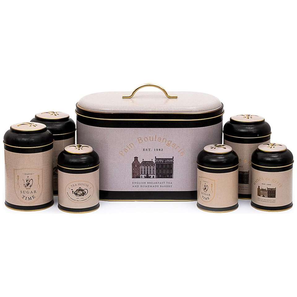 Juego de cocina de caja de lata redonda de 7 piezas Tapa de cúpula Diseño de textura de lino inspirado en café vintage Diseño Azura