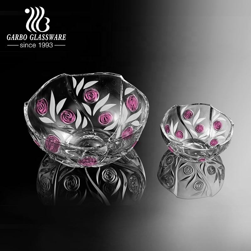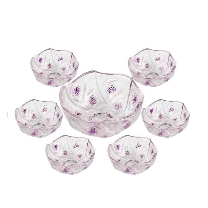 Juego de 7 Piezas de Tazones de Vidrio Decorativos Personalizados de Color Rosa para Helado y Fruta con Diseño de Flores para Uso Familiar