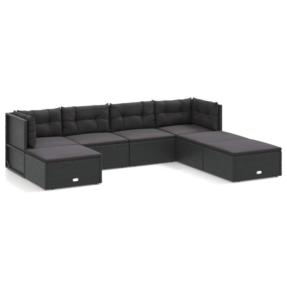 Juego de salón de patio de ratán polivinílico negro de 7 piezas con cojines Juegos de jardín