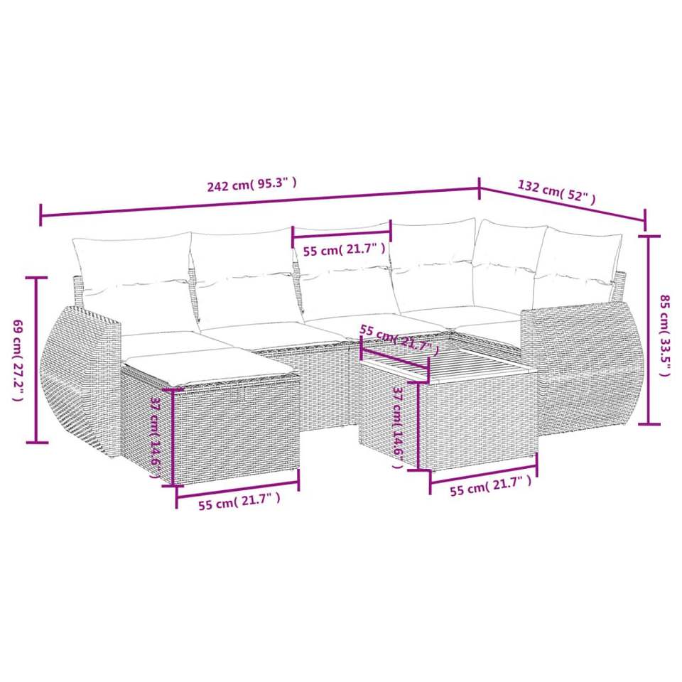 Juego de sofás de patio de ratán sintético negro de 7 piezas con cojines para sofás de jardín