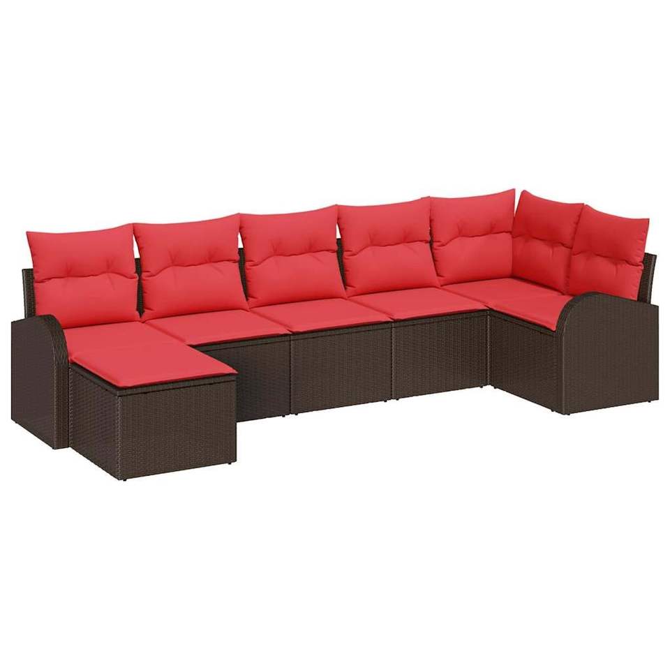 Juego de Sofás de Jardín de 7 Piezas en Poliratán Marrón con Cojines