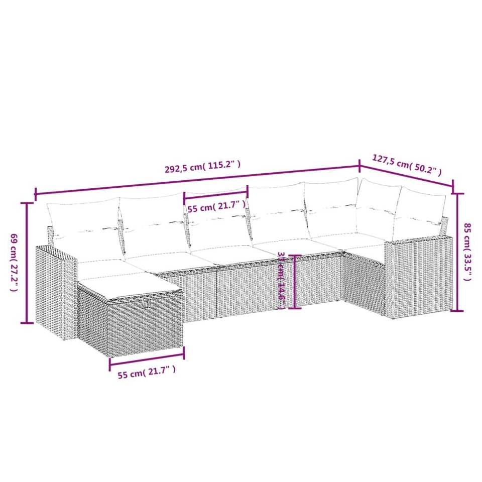 Juego de sofás de patio de ratán sintético marrón de 7 piezas con cojines, elegantes muebles de exterior