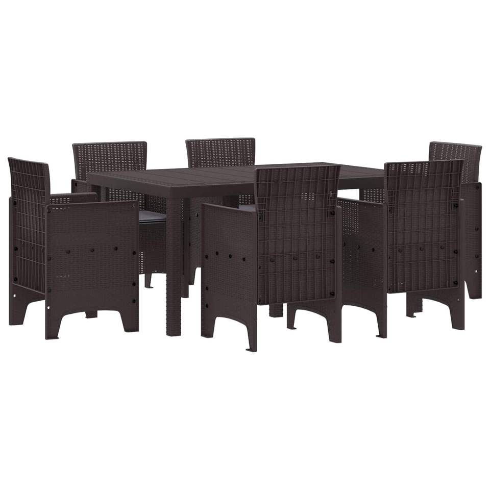 Juego de comedor de jardín de ratán sintético marrón de 7 piezas