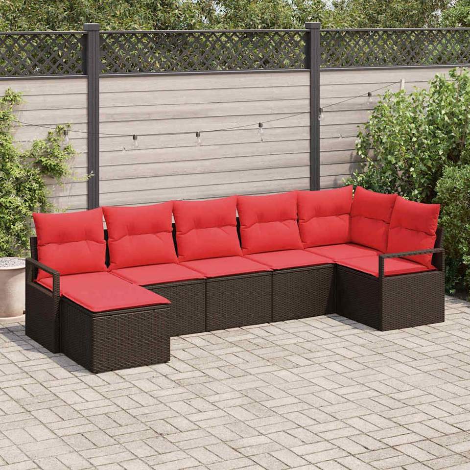 Juego de sofás de jardín de ratán sintético marrón de 7 piezas con cojines