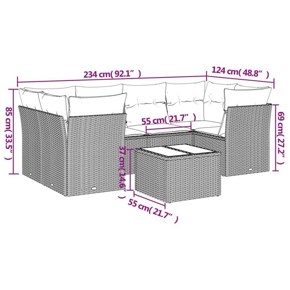 Juego de sofás de patio de ratán sintético gris de 7 piezas con cojines, muebles duraderos para exteriores