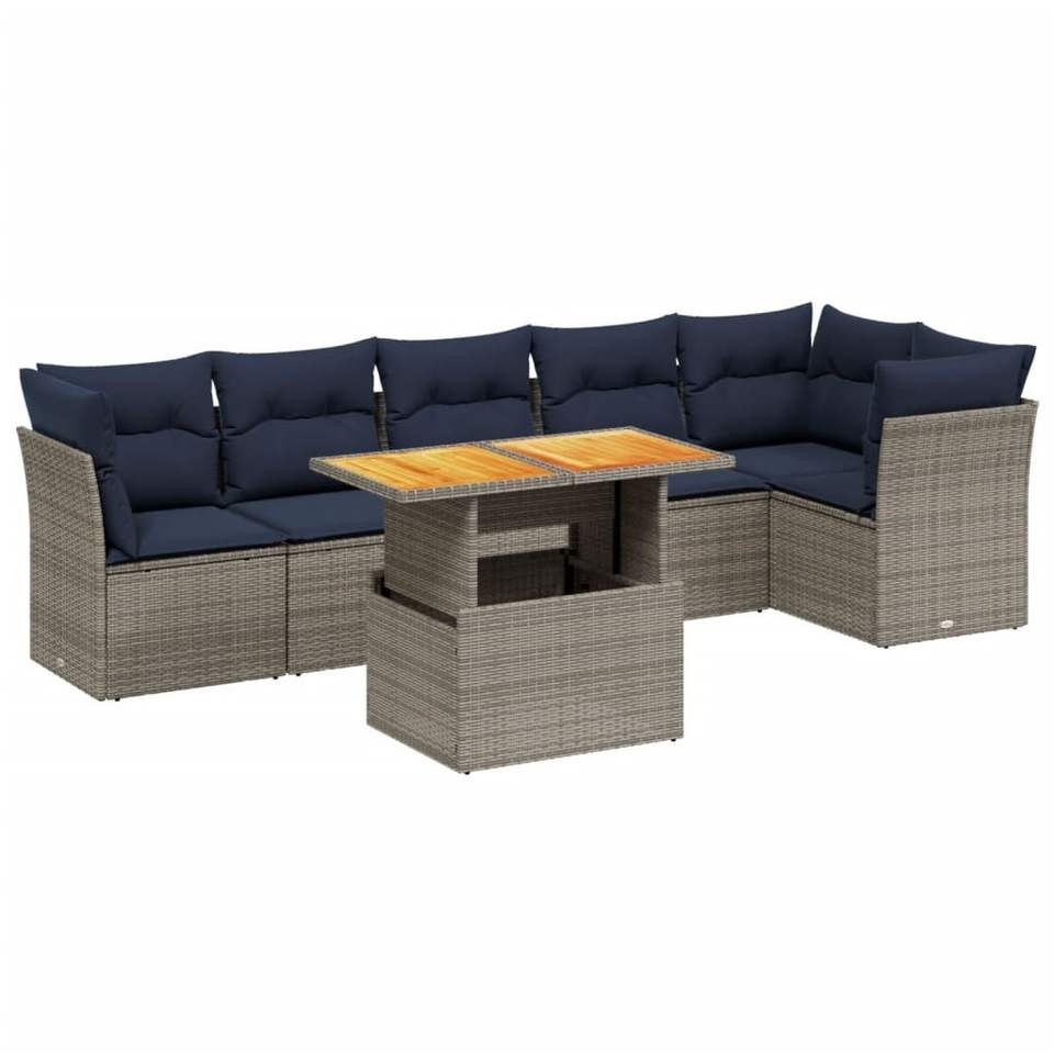 Juego de sofás de patio de ratán sintético gris de 7 piezas con cojines, muebles duraderos para exteriores