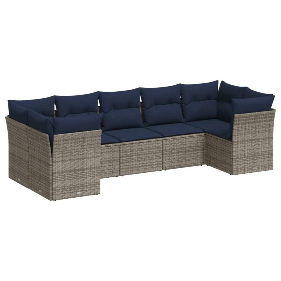 Juego de sofás de patio de ratán sintético gris de 7 piezas con cojines, muebles duraderos para exteriores