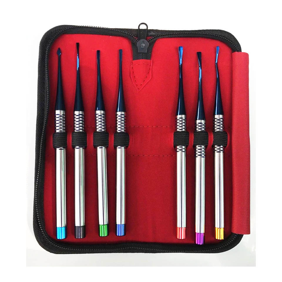 Juego de 7 Elevadores de Raíces Luxating con Recubrimiento de Titanio PDL para Implantes Dentales, Instrumentos Médicos de Extracción, con Casete de Esterilización