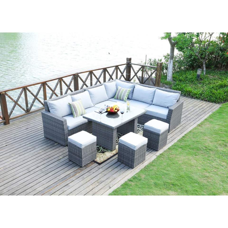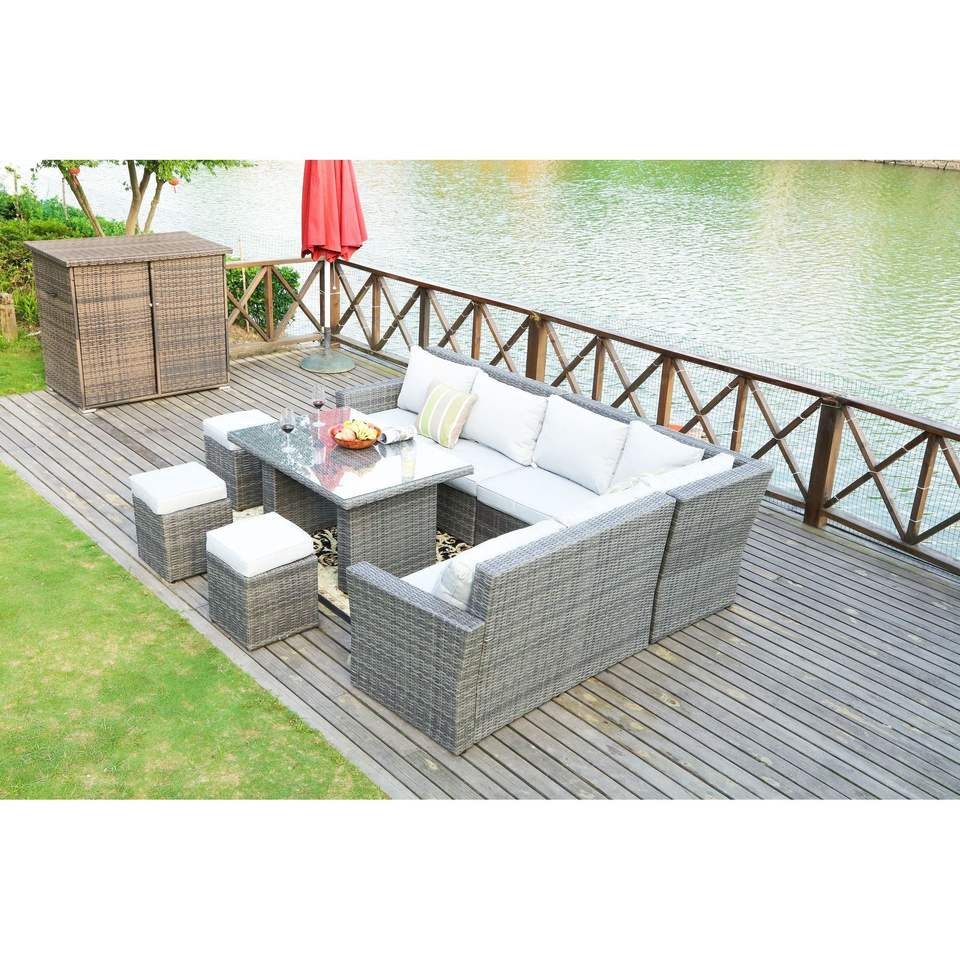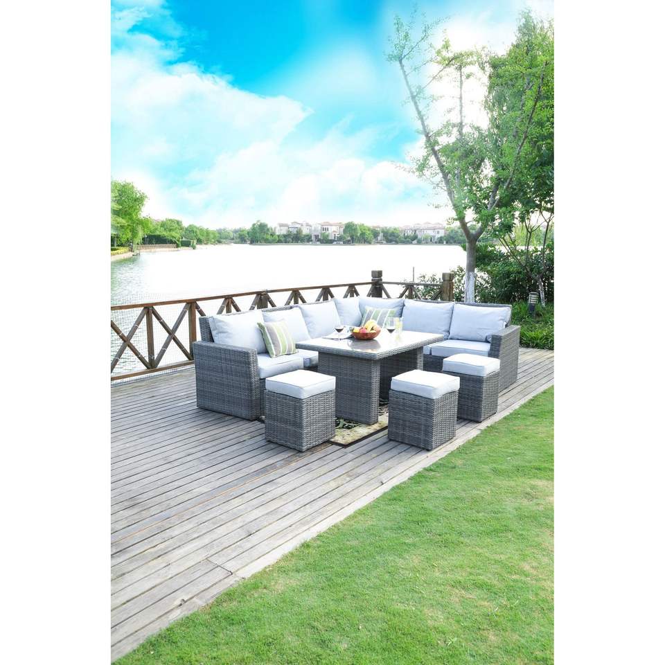 Juego de Muebles de Jardín de 7 Piezas de Mimbre Sintético Gris, Elegante y Duradero, para Exteriores