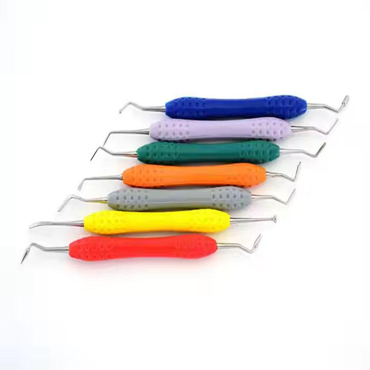 Juego de instrumentos de relleno de limpieza Dental de 7 piezas, incluye condensador Manual Plugger Ball Burnisher Scaler con mango de silicona incluido