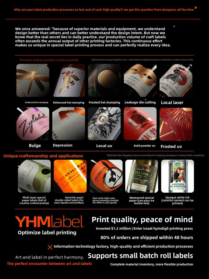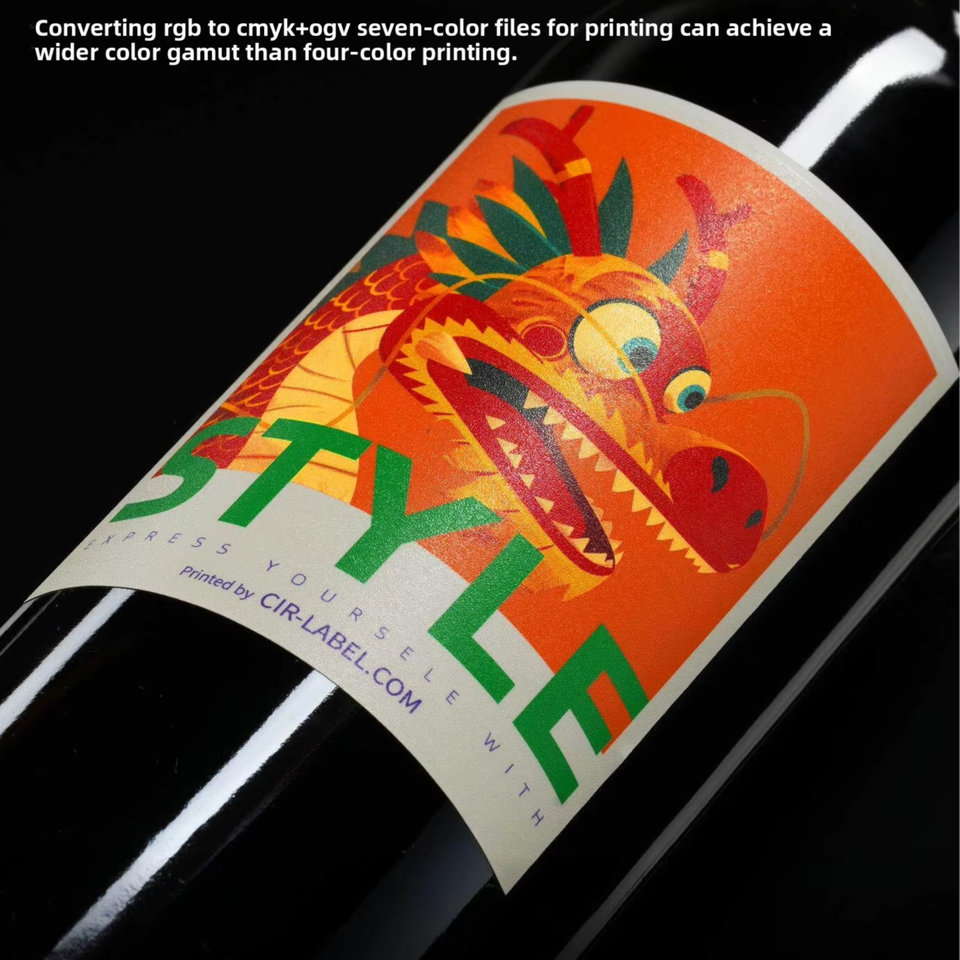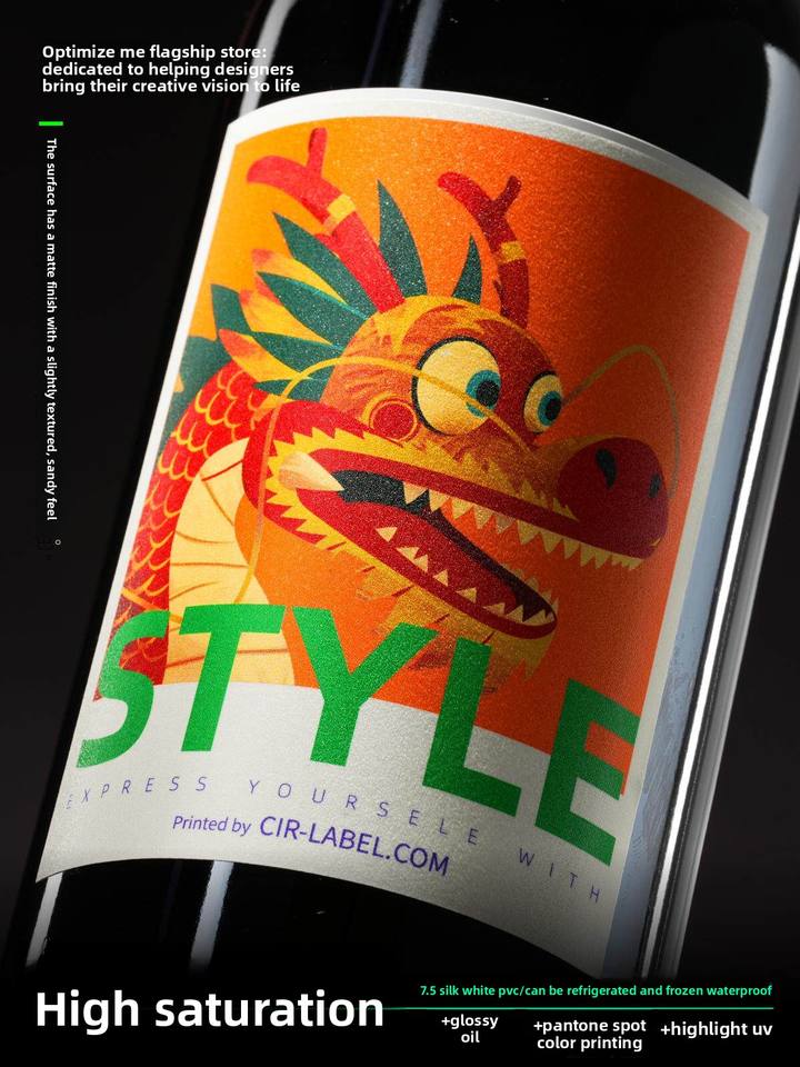 Etiqueta Autoadhesiva de PVC para Bebidas con Impresión a Color de Alta Saturación RGB Simulada de 7 Colores, Plateada, con Estampado en Caliente UV