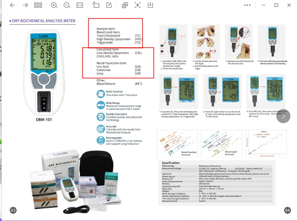 Equipo de Análisis de Sangre Bioquímico Seco 7 en 1 para CREATININA/ÁCIDO ÚRICO/UREA, TC, HDL, Triglicéridos, Relación COLESTEROL/HDL