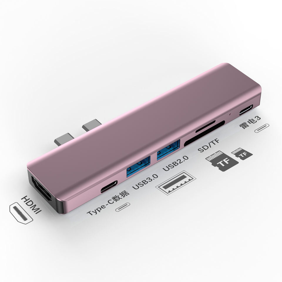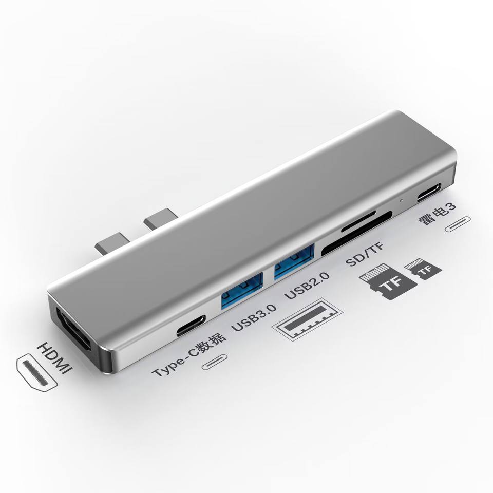 7 En 1 Dual USB Tipo C Hub 7 en 2 Adaptador de base para Macbook Hub Splitter Docking Station