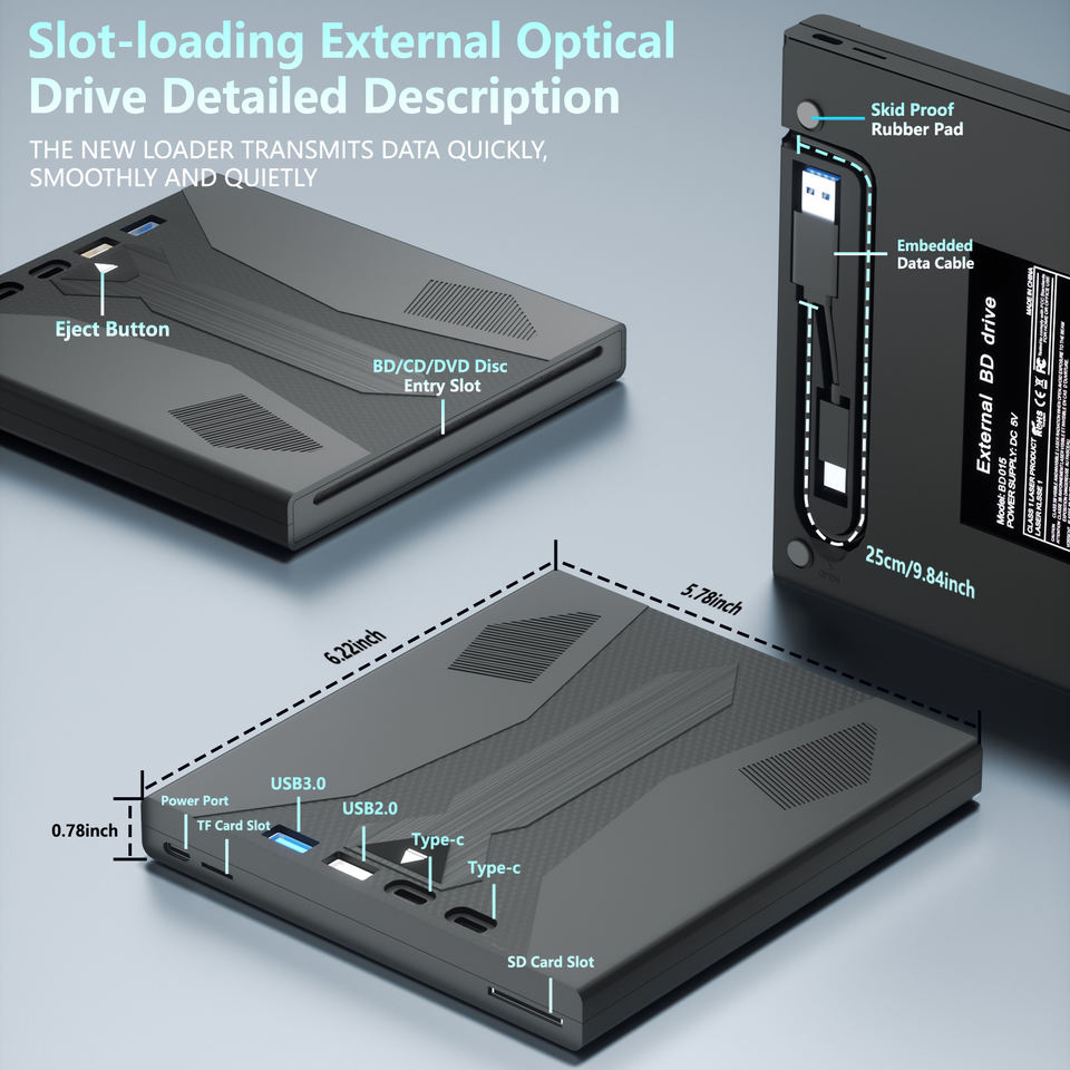 La Unidad óptica de grabación de Blu-ray multifunción 7 en 1 puede grabar CD/DCD/BD escribir CD/DVD/BD Compatible con computadoras portátiles de escritorio Macs, etc.