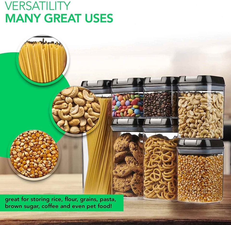 7 recipientes de plástico para organización de cocina y despensa, recipientes herméticos para almacenamiento de alimentos con tapas, alimentos secos