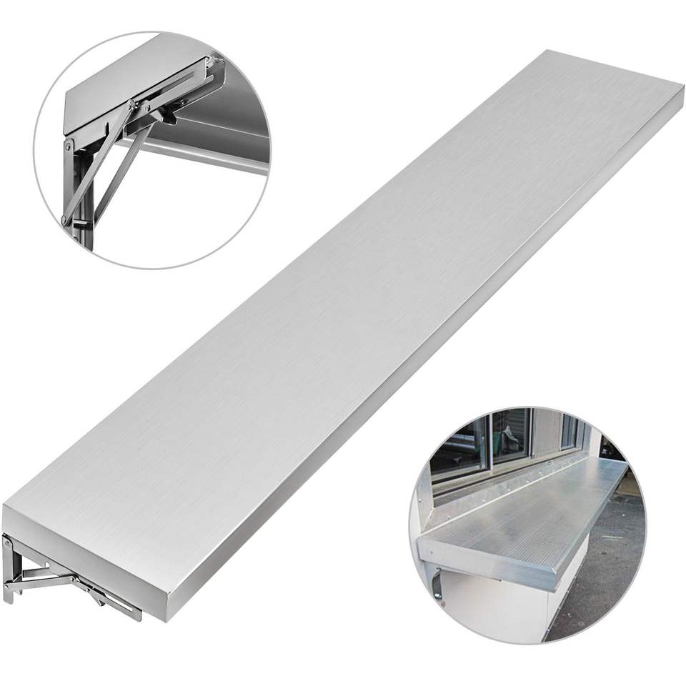 Estante de Concesión de Acero Inoxidable de 70.8L x 11.4W Pulgadas con Tablero de Superficie, Estante de Pared para Ventana de Servicio de Remolques de Comida