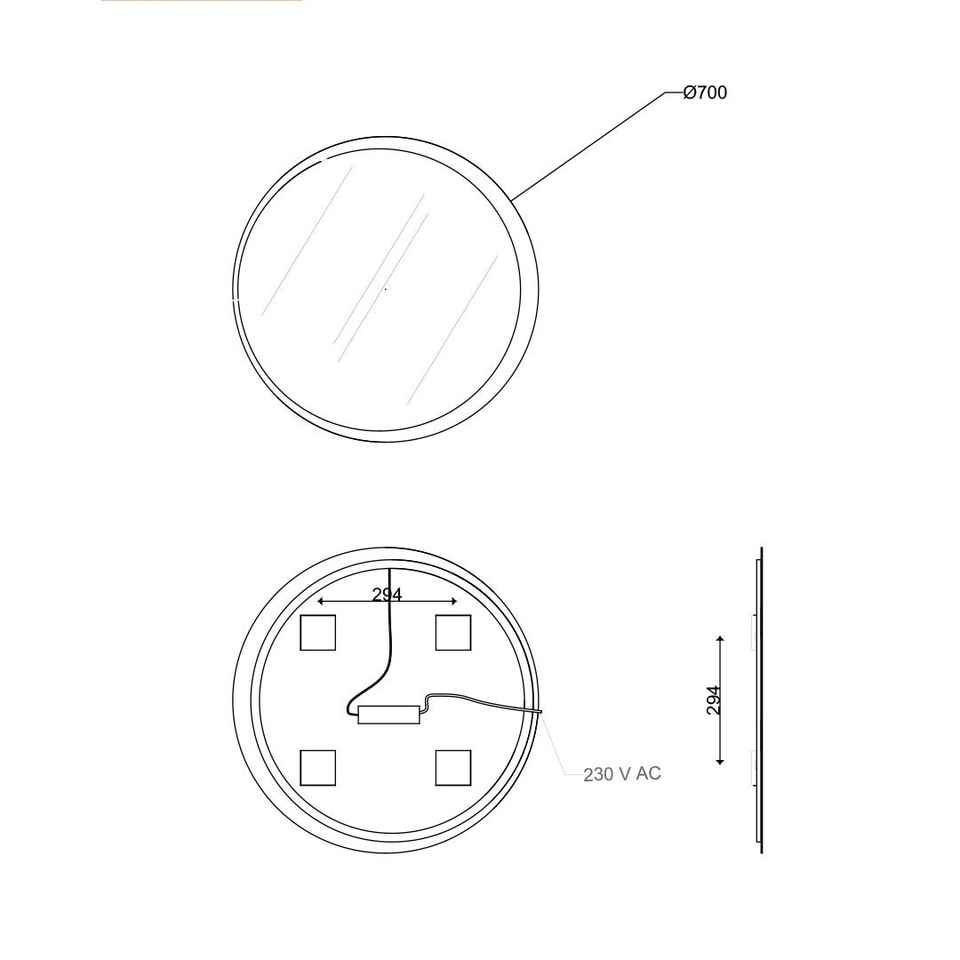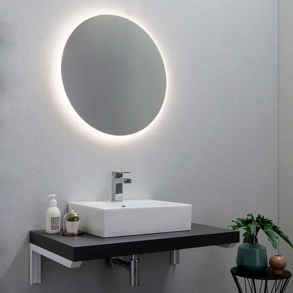 Espejo de Baño Redondo de 70 cm de Diámetro con Retroiluminación LED, Resistente al Agua, Diseño Minimalista, Marco de Aluminio, Montado en la Pared