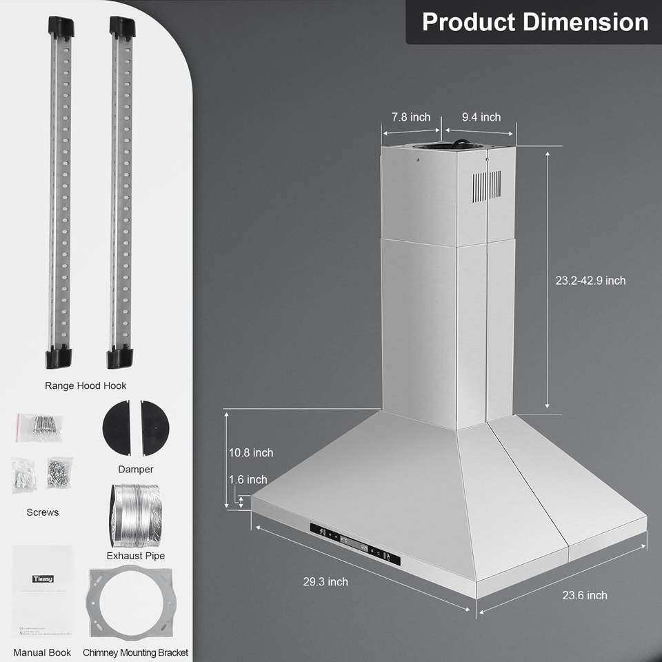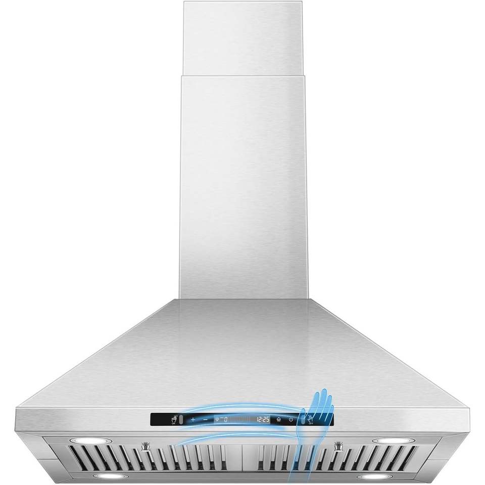 Campana Extractora de Techo de 700 CFM para Cocina, Campana Extractora de Isla de 30 Pulgadas con 4 Luces LED, Ventilador de 3 Velocidades, Control Táctil/Gestual, Convertible