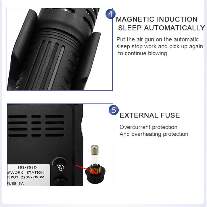 Pistola de Calor de 700W 858D para Retrabajo BGA, Herramientas de Reparación de Soldadura SMD SMT, Estación de Soldadura Digital LCD