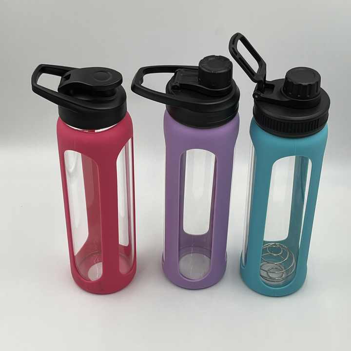 Nombre:Botellas de cristal de la coctelera con la manga protectora del silicón